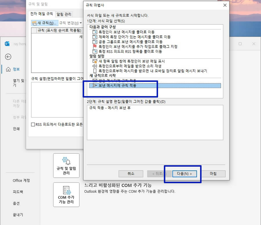 아웃룩 실행 => 상단 왼편의 “파일” 클릭